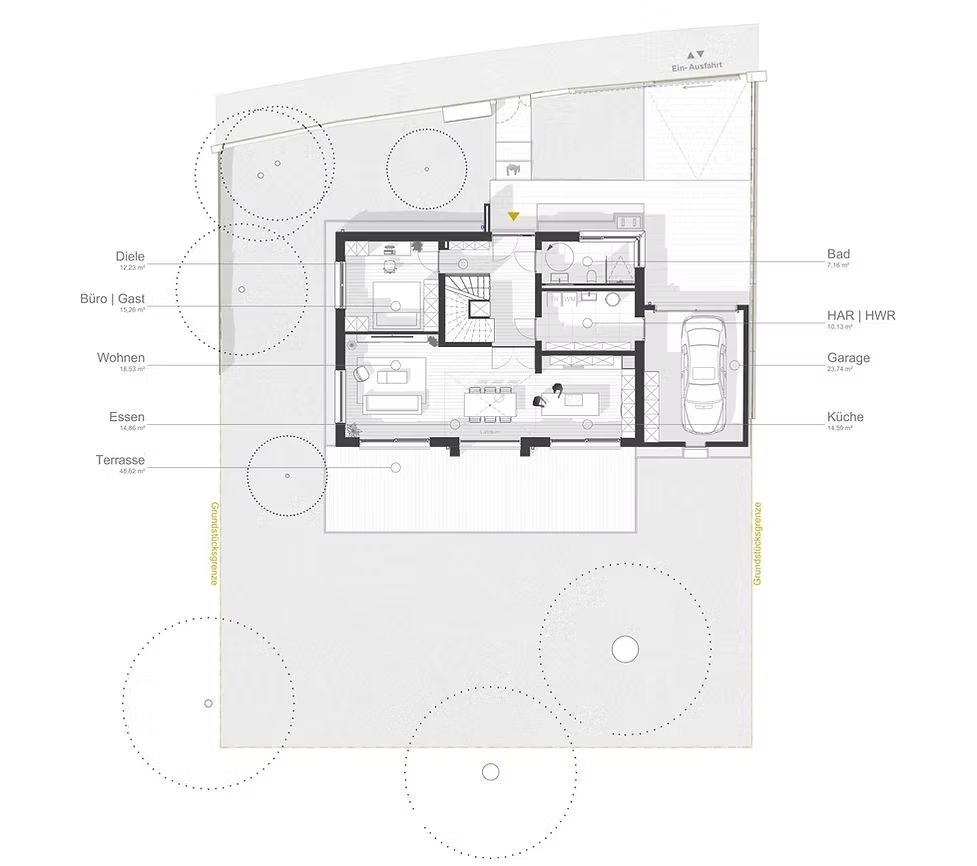 Privatsphäre und Offenheit in Balance:Modernes Wohnen mit hoher Raumqualität